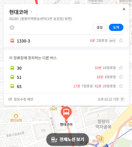 실시간 위치를 확인하시면 현재 버스의 위치를 알 수 있습니다.