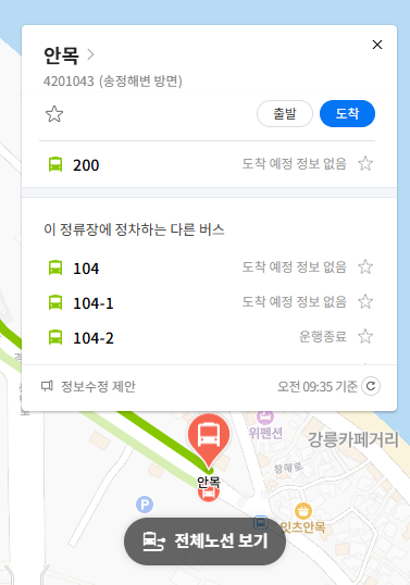 기점행 : 첫차 : 07:35 막차 : 20:20