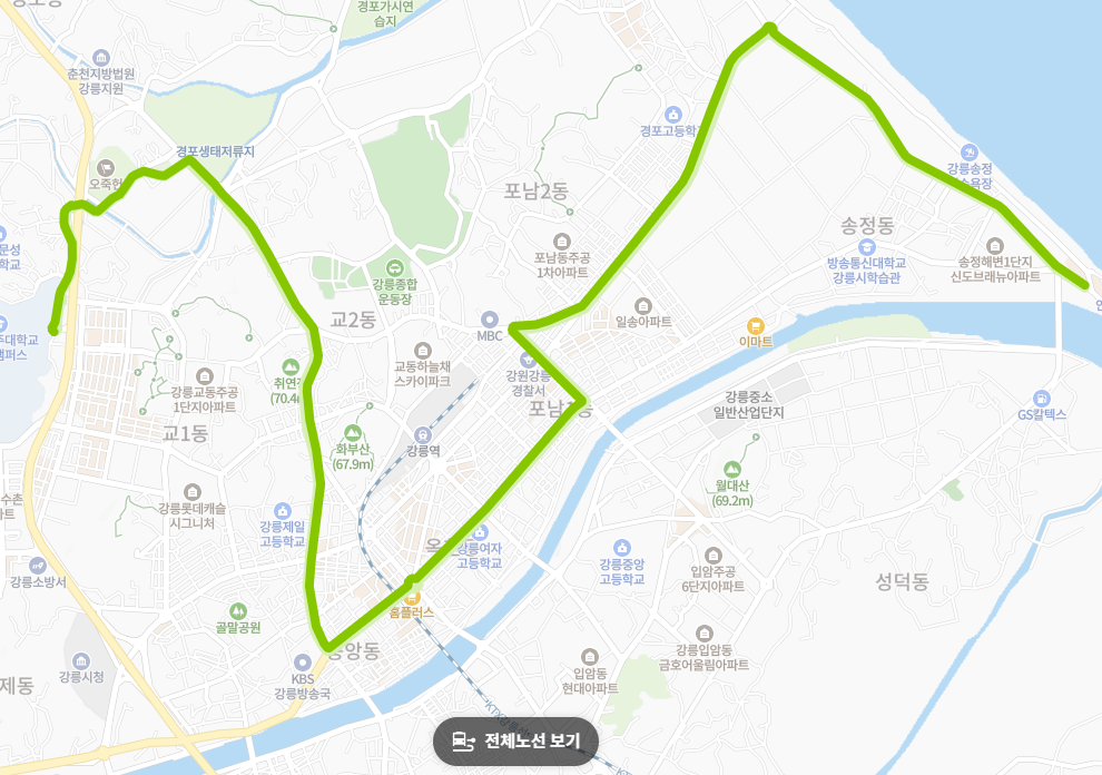 이 노선은 안목해변에서 시작해 강릉의 대표적인 명소인 오죽헌까지 이어지기 때문에 관광객들에게 특히 유용합니다. 아름다운 바다와 유명한 해변을 즐긴 후, 한국의 역사와 문화를 느낄 수 있는 오죽헌을 한 번의 버스 탑승으로 방문할 수 있습니다. 중간에 강릉 시내를 관통하면서 포남시장, 교보생명 등 주요 도심 지역을 거치므로 관광과 일상생활의 편리함을 동시에 제공합니다.