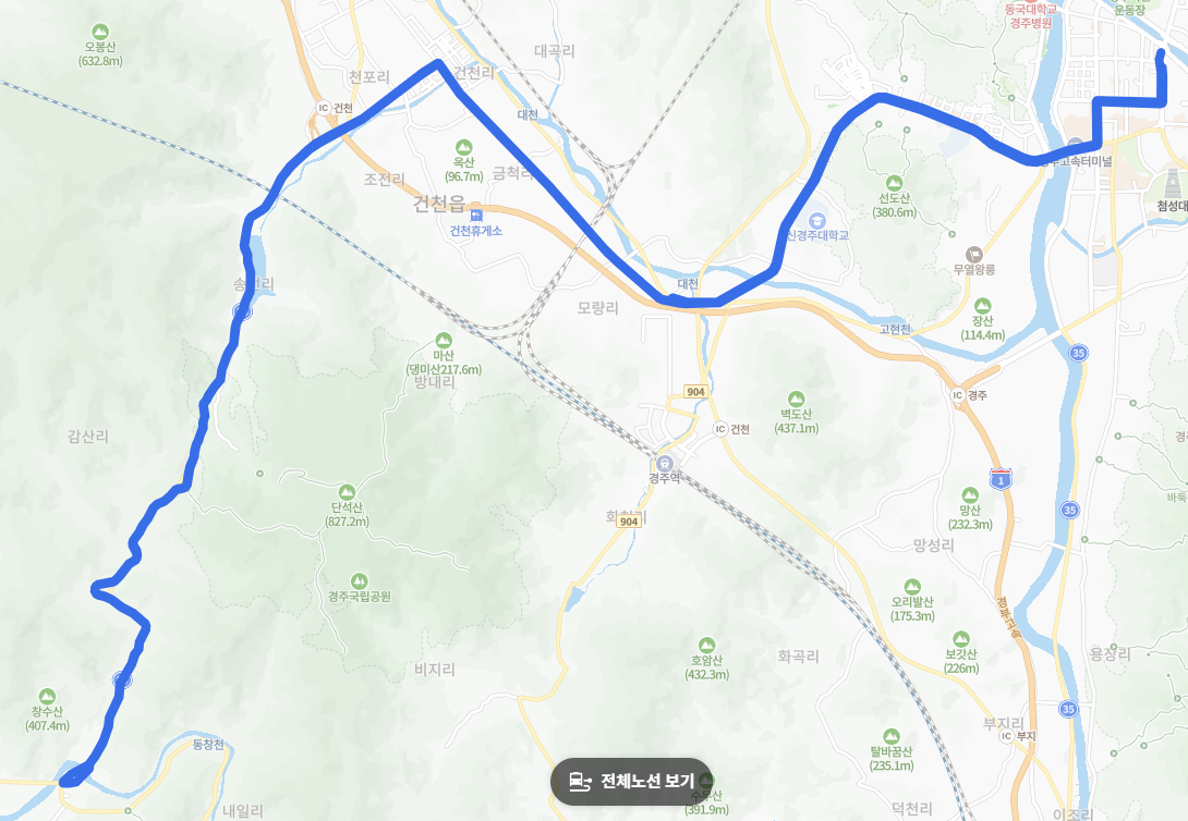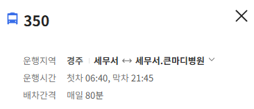 350번 버스는 경주 시내에서 건천, 산내 방면으로 가는 사실상 유일하고 가장 중요한 대중교통 수단입니다.