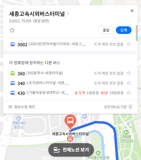 마지막 버스 정류장 세종고속시외버스터미널 위치 알아보기