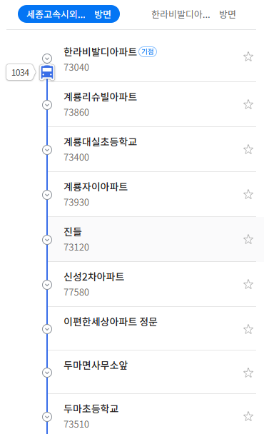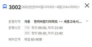 종점 : 세종고속시외버스터미널