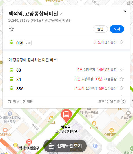 주요 버스 정류장 백석역.고양종합터미널 위치 알아보기