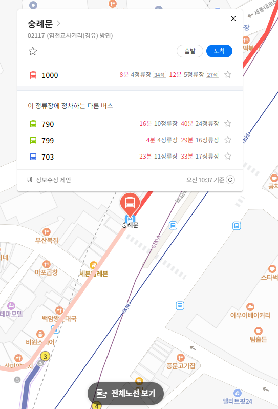 실시간 위치를 확인하시면 현재 버스의 위치를 알 수 있습니다.