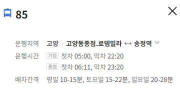 고양 85번 버스 노선 정보