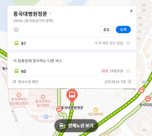 주요 버스 정류장 동국대병원정문 위치 알아보기