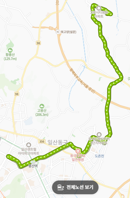 식사동 위시티 단지들을 구석구석 경유합니다. 단지 내에서 동국대학교 일산병원이나 풍산역 인근 상권으로 이동하려는 주민들에게 매우 편리한 노선입니다. 특히 동국대병원 정문과 후문을 모두 경유하여 병원 이용객들에게도 유용합니다.