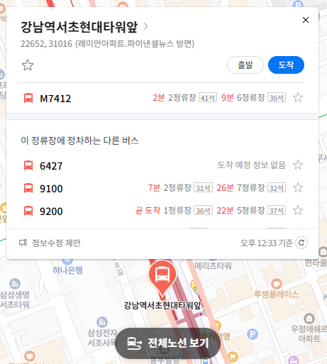 마지막 정류장 강남역서초현대타워앞 위치 알아보기