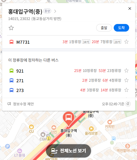 주요 정류장 홍대입구역 위치 알아보기