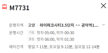 고양 M7731번 버스 배차간격