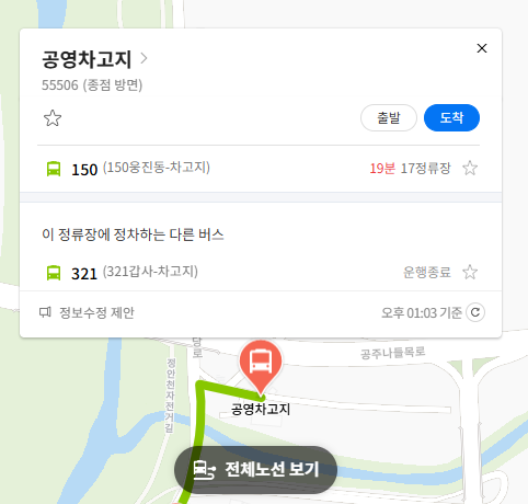 공주 150번 버스 실시간 위치 조회하기