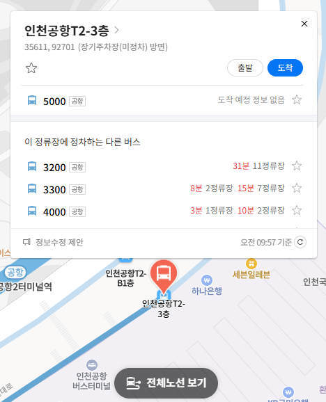 마지막 정류장 인천공항3층출국장(T2) 위치 알아보기