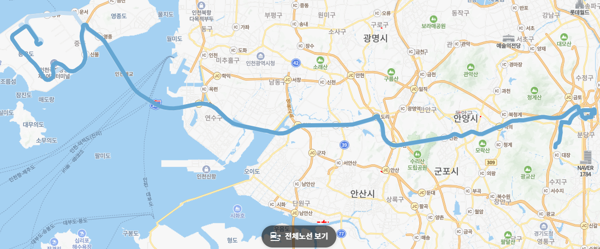공항 5000번 버스 운행노선 판교풍경채7단지→판교대장초·중학교→태영데시앙→운중동행정복지센터→성내미육교.판교박물관→SK플래닛.판교디지털센터→벌말육교→판교역북편→판교TG(미정차)→청계터널진입(미정차)→학의JC(미정차)→평촌IC(미정차)→산본IC(미정차)→조남JC(미정차)→하늘휴게소→물왕(미정차)→연성IC(미정차)→월곶JC(미정차)→정왕IC(미정차)→연수JC(경유)→인천대교(미정차)→인천대교TG(미정차)→제1여객터미널진입1(미정차)→제1여객터미널진입2(미정차)→제1여객터미널진입3(미정차)→제1여객터미널진입4(미정차)→인천공항3층출국장(T1)→인천공항전망대(미정차)→인천공항T2-3층
