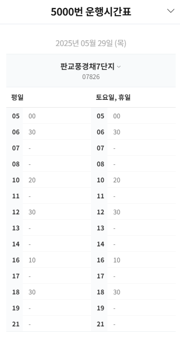기점행 : 첫차 : 05:00 막차 : 15:30