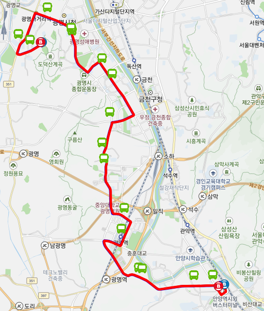 다양한 지역 연결: 광명7동, 광명사거리, 철산역, 하안동, 광명역, 박달동, 안양역 등 광명 시내 곳곳을 연결하여 편리한 이동을 지원합니다.