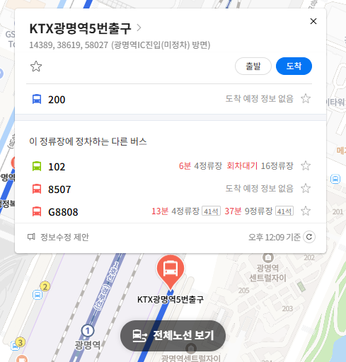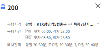 광명 200번 버스 실시간 위치 조회하기