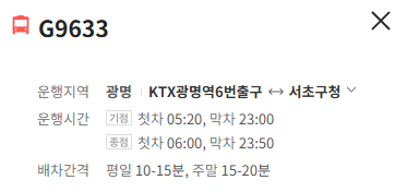 종점행 : 첫차 : 06:00 막차 : 23:50