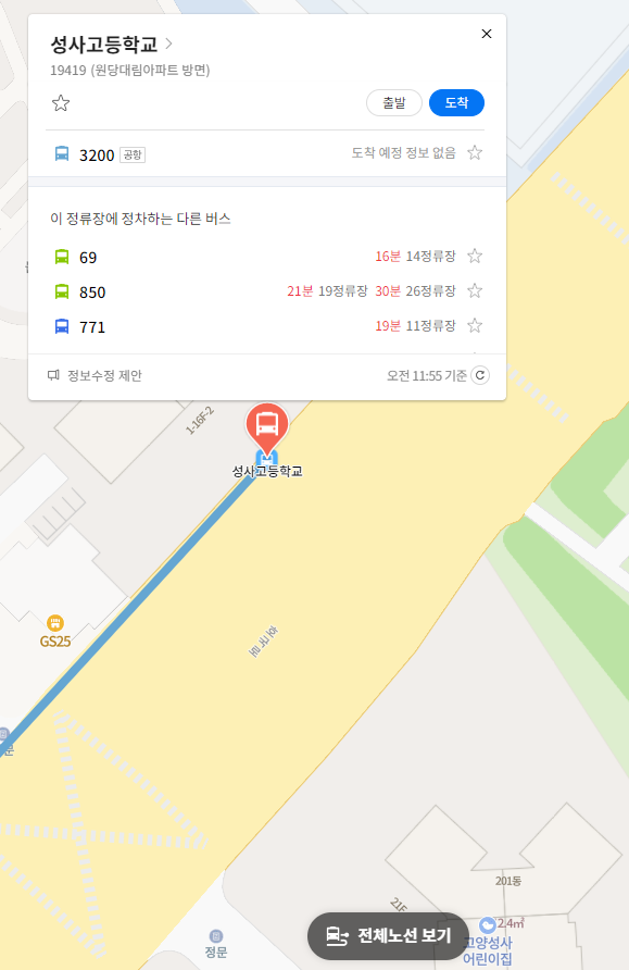 첫 번째 정류장 성사고등학교 위치 알아보기