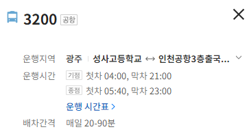 광주 공항 3200번 버스 배차간격 및 시간표
