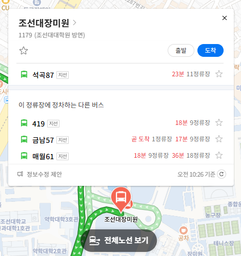 주요 버스 정류장 조선대장미원 위치 알아보기