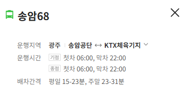 광주 송암68번 버스 배차간격