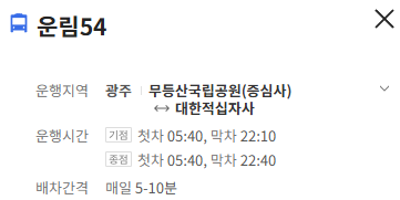 광주 운림54번 버스 배차간격