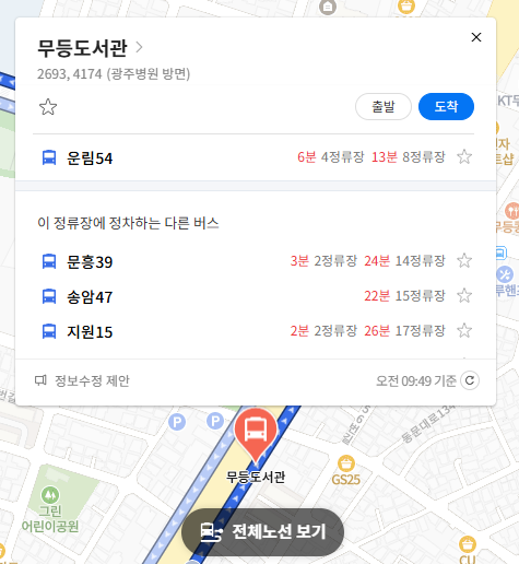 광주 운림54번 버스스 실시간 위치 조회하기