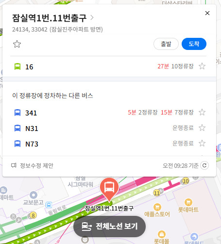 주요 버스 정류장 잠실역1번.11번출구 위치 알아보기