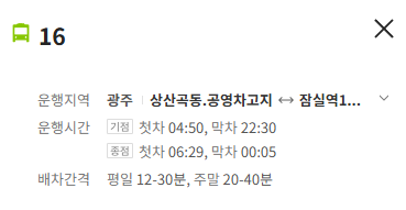 기점행 : 첫차 : 04:50 막차 : 22:30