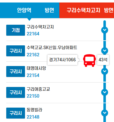 구리 1650번 버스 실시간 위치 조회하기