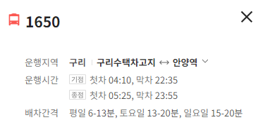 구리 1650번 버스 배차간격