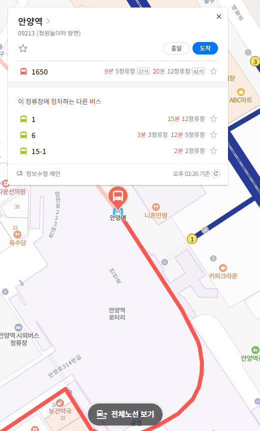 실시간 위치를 확인하시면 현재 버스의 위치를 알 수 있습니다.