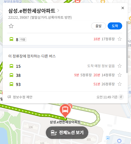 주요 버스 정류장 삼성.e편한세상아파트 위치 알아보기