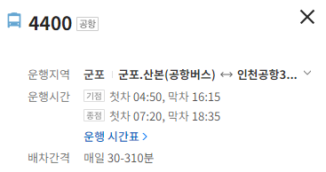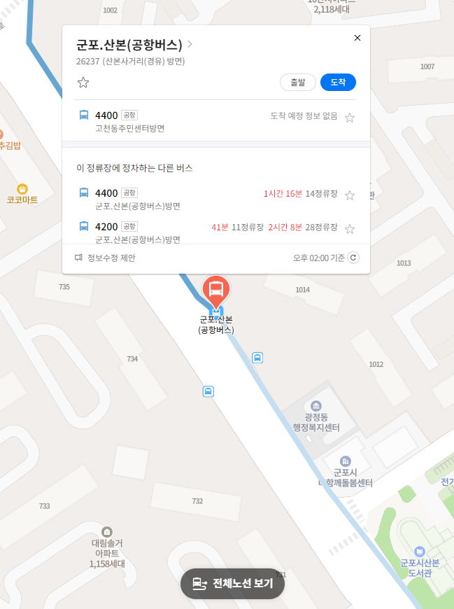 첫 번째 정류장 군포.산본(공항버스) 위치 알아보기