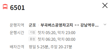 군포 6501번 버스 배차간격