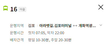 김포 16번 버스 노선 정보