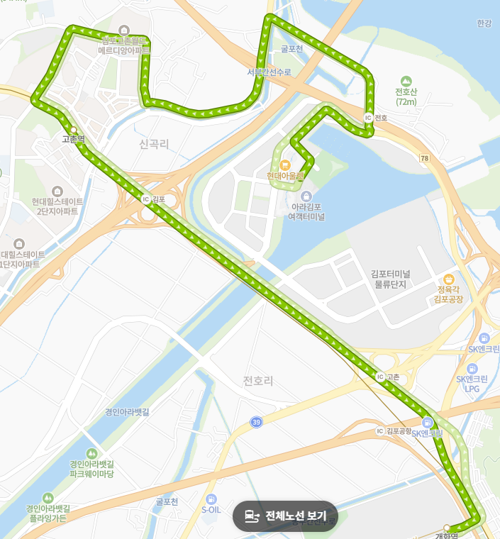 아라뱃길 김포여객터미널: 아라뱃길을 이용하거나 주변 시설을 방문하려는 시민들에게도 유일하게 접근 가능한 대중교통 노선 역할을 합니다.