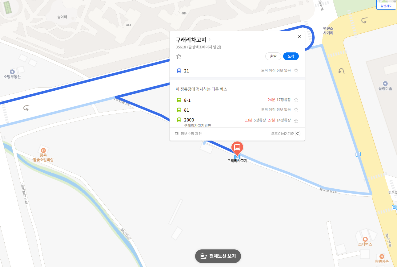 첫 번째 정류장 구래리차고지 위치 알아보기