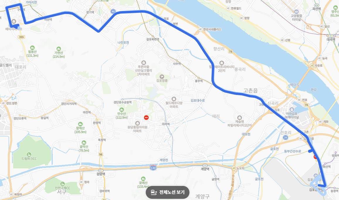 가장 큰 장점은 김포 한강신도시의 주요 주거 단지와 김포공항을 한 번에 연결해 준다는 점입니다. 구래동, 마산동 등 대규모 아파트 단지가 밀집한 지역에서 출발해 김포공항으로 바로 갈 수 있어, 공항을 이용하거나 공항철도를 통해 다른 지역으로 환승하려는 주민들에게 매우 편리합니다.