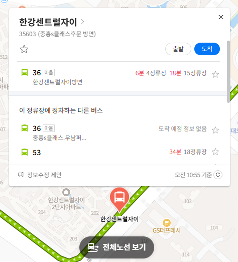 실시간 위치를 확인하시면 현재 버스의 위치를 알 수 있습니다.