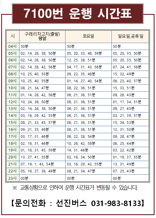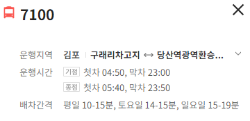 김포 7100번 버스 배차간격 및 시간표