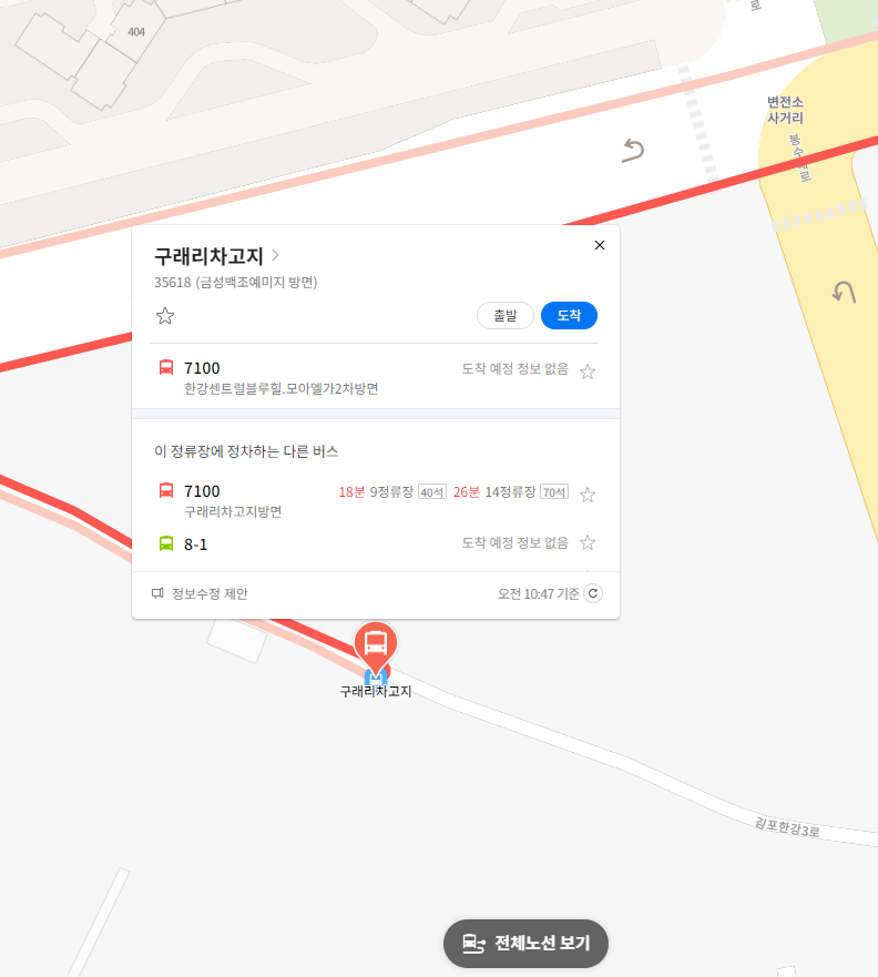 첫 번째 정류장 구래리차고지 위치 알아보기