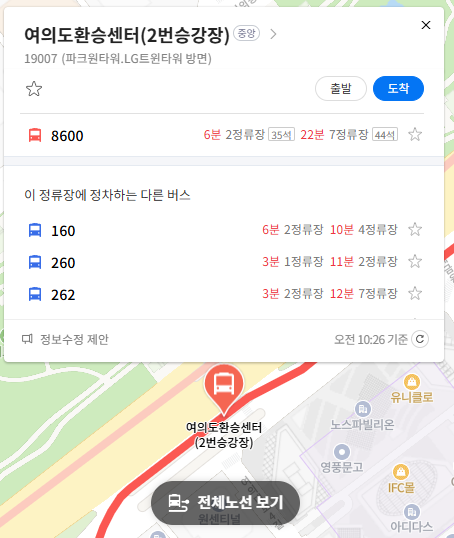 주요 정류장 여의도환승센터 (2번승강장) 위치 알아보기