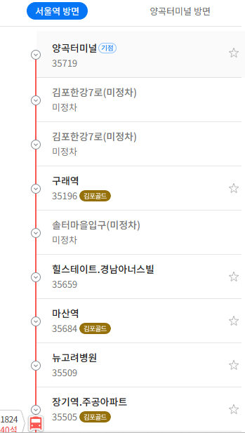 종점행 : 첫차 : 05:40 막차 : 00:20