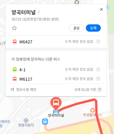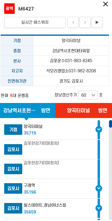 김포 M6427번 버스 노선 실시간 위치 조회하기
