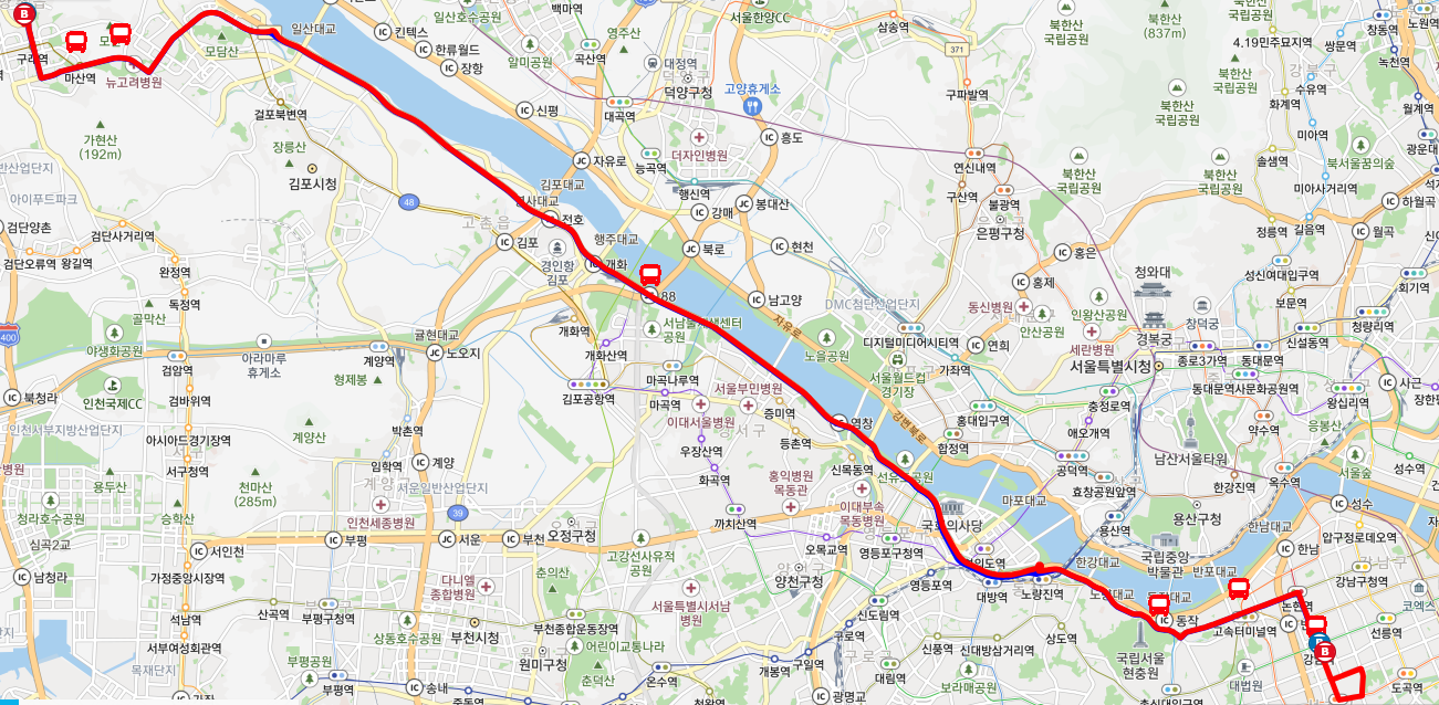 김포와 서울 강남 연결