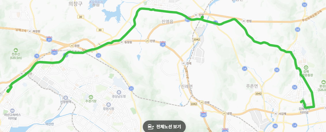 경전철/기차 연계: 김해의 봉황역(김해경전철)과 창원의 진영역/창원역(철도)을 모두 경유하여, 대중교통 종류를 망라한 환승 편의성이 높습니다.