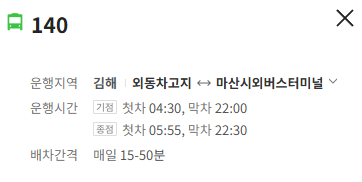 마산 방면 직결: 노선의 종점이 마산시외버스터미널이라 마산 시내로의 접근성이 높으며, 마산/창원에서 고속/시외버스 연계가 필요한 승객에게 매우 편리합니다.