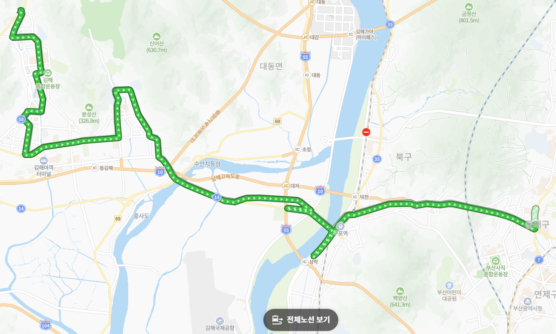 4. 부산 지하철 3호선 구간 완벽 연계 강서구청역부터 시작해 구포역, 덕천역, 숙등역, 남산정역, 만덕역, 미남역까지 3호선의 주요 구간을 그대로 따라갑니다. 지하철 3호선 이용이 필요한 김해 시민들에게는 지하철보다 더 가까운 곳에서 탈 수 있는 대체 수단이자 훌륭한 연계 노선입니다.