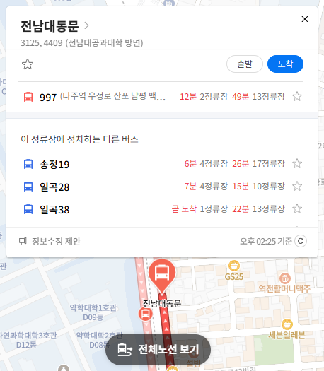 주요 버스 정류장 전남대동문 위치 알아보기